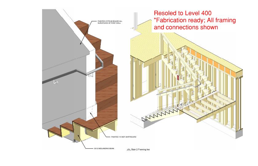 The intent of designers and engineers is that the General Contractor will complete the documents by the use of shop drawings, layout drawings, and will do the clash detection and coordination to make all the parts and pieces of the building fit together. This is termed “Level of Development 400” and is ready for a tradesperson to begin fabricating the building